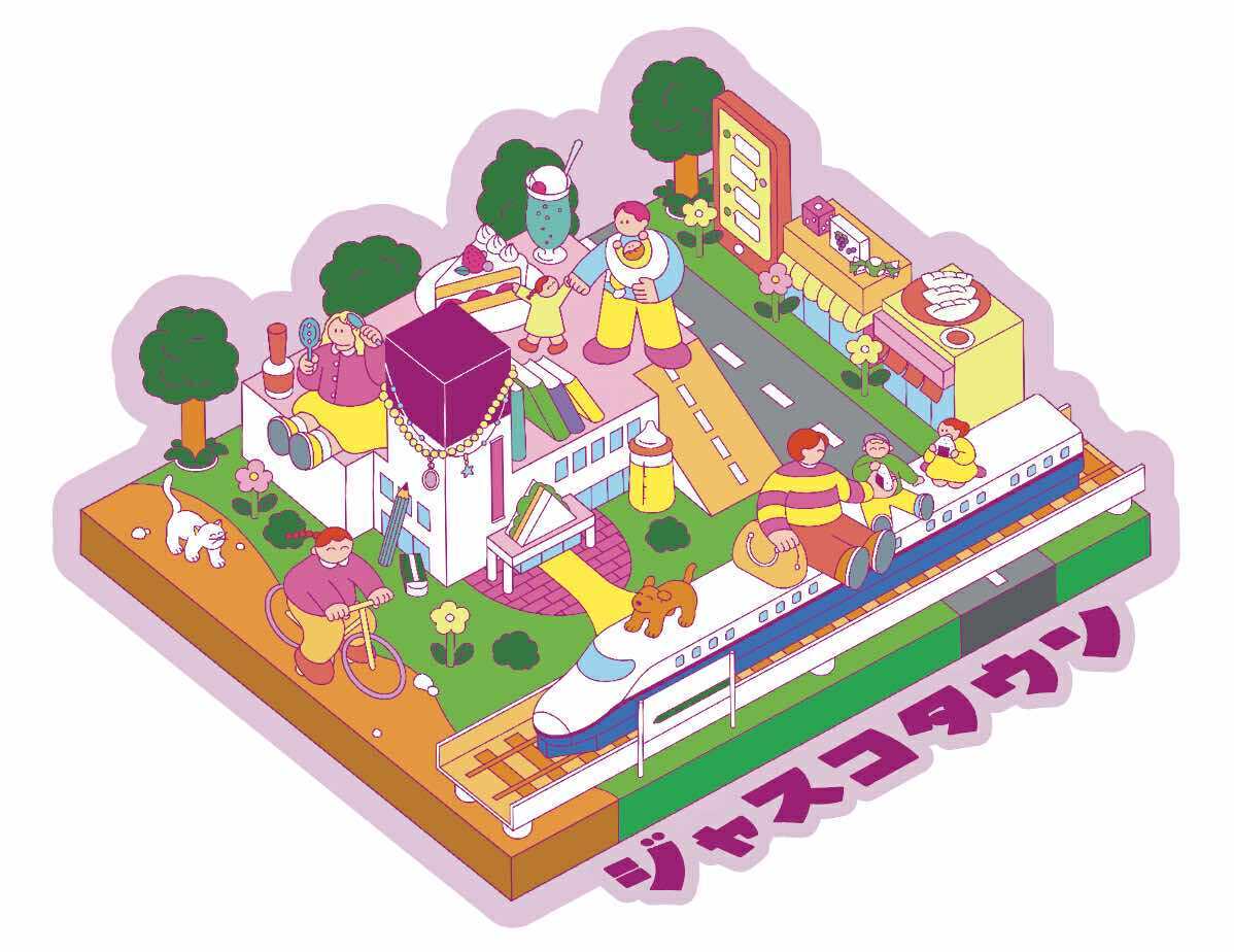 ZINE「JUSCO TOWN」の表紙イラストを切り出したかわいいステッカー